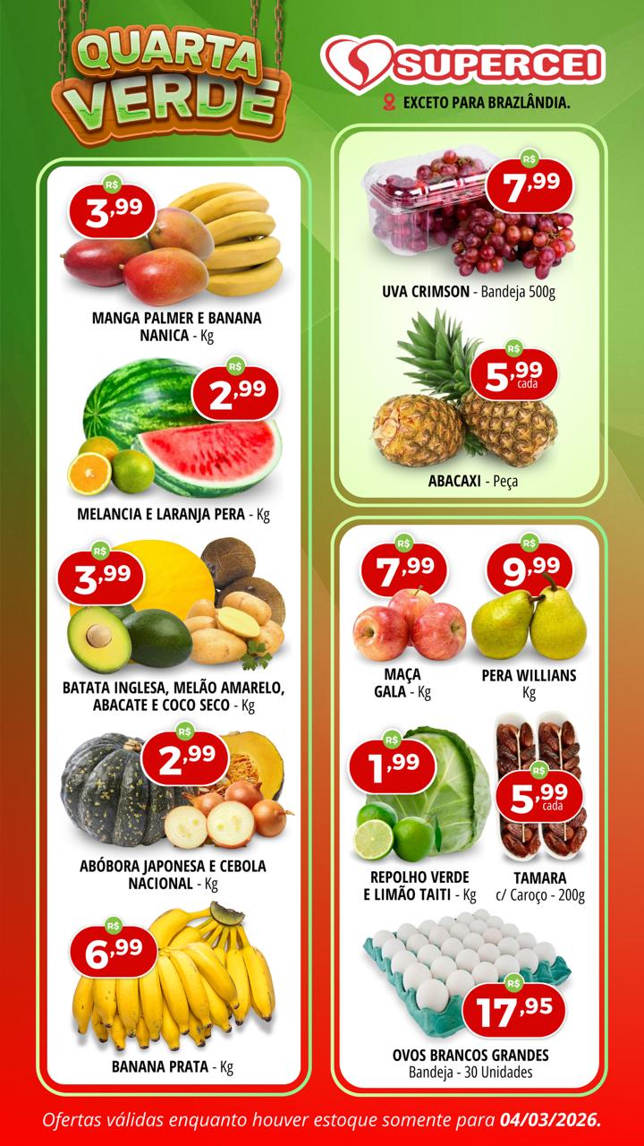 Supermercado Supercei, Supercei Brasília, Ofertas Supercei, Supermercado Ceilândia, Supermercado Samambaia, Preço Baixo DF, Compras Brasília, Hortifrúti Brasília.
