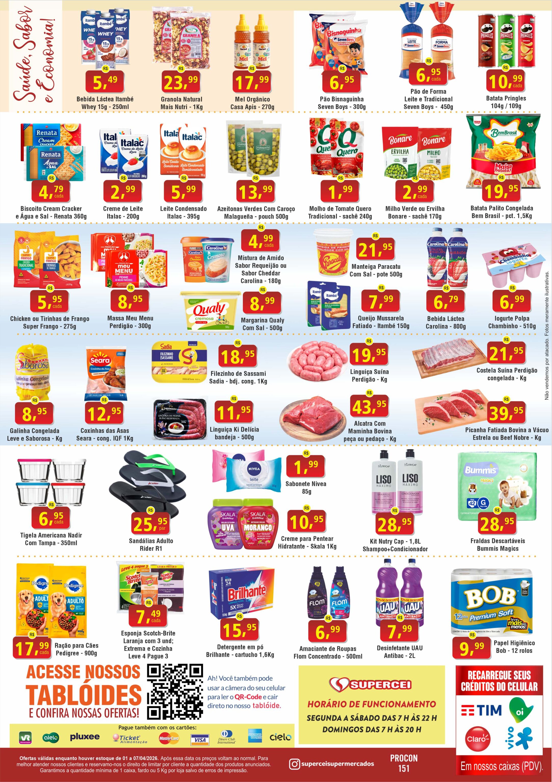 Encartes Semanais: Fique de olho nos panfletos digitais ou impressos. O Supercei é conhecido por baixar os preços em itens de mercearia e limpeza de forma cíclica.