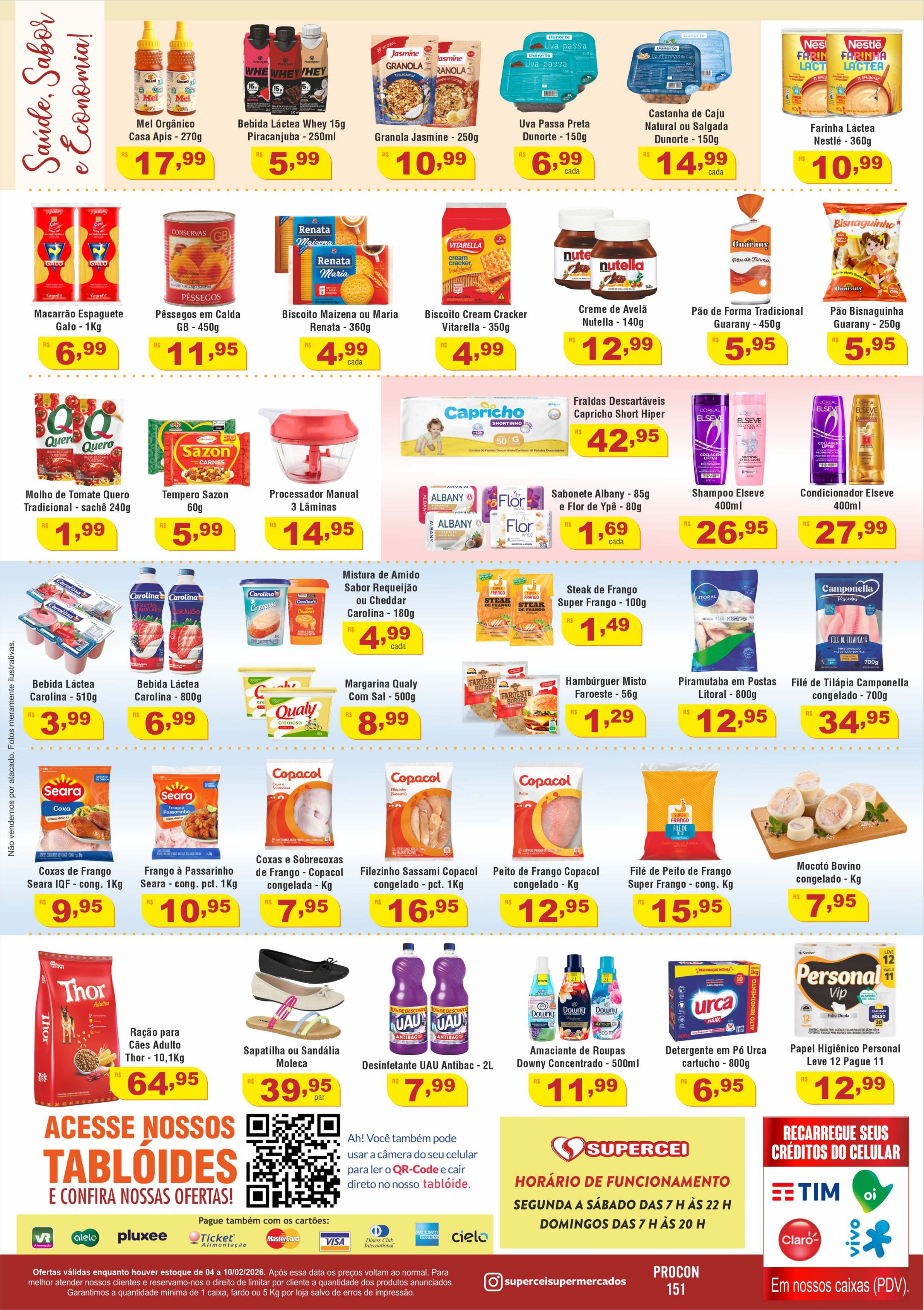Para sua comodidade, todas as unidades do Supercei ficam abertas de segunda a sábado, domingos e feriados.