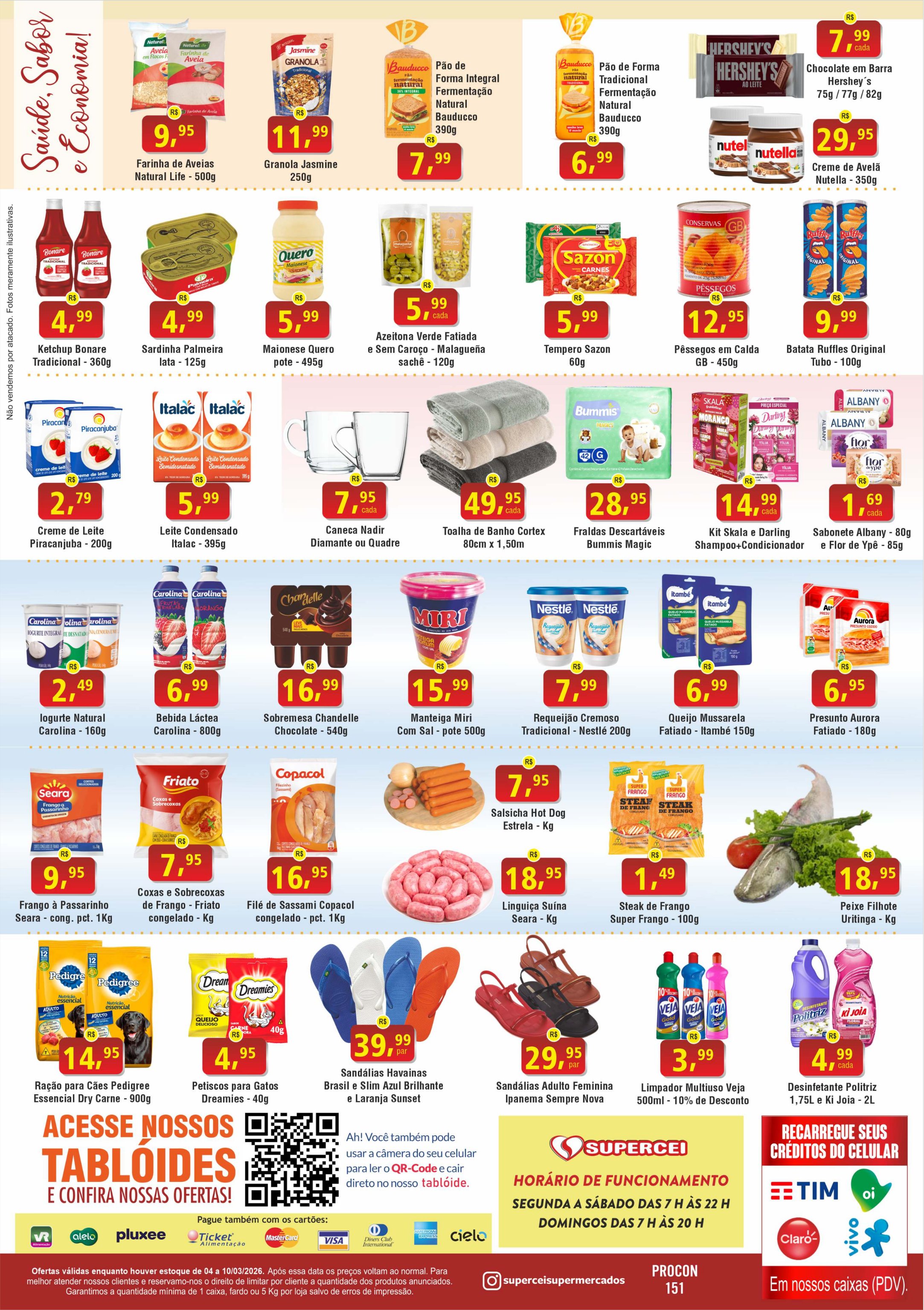 Encartes Semanais: Fique de olho nos panfletos digitais ou impressos. O Supercei é conhecido por baixar os preços em itens de mercearia e limpeza de forma cíclica.
